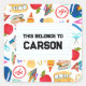 A back to school "This Belongs To" kids' fun school sticker designed to be engaging and visually appealing for children. It includes a space for the child's name, allowing for customization and personal ownership. The fun design encourages children to take pride in their belongings and helps them keep track of their school materials.