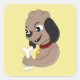 Sticker Carré Baguette de dessin de chien chiot carré autocollan