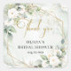 Élégant bohème Aquarelle fleurs blanches peintes à la main roses pivoines mélange de feuillage de verdure frais et lettrage moderne combiné remerciement autocollant rond classique.