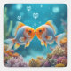 Sticker Carré Baiser du poisson avec des bulles cardiaques