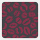 Sticker Carré Baisers en bâton à lèvres : empreintes rouges fonc