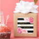 Fête des mariées préférez les étiquettes autocollants en bandes noir et blanc motif avec fleurs d'aquarelle rose et texte de couleur or. Une belle façon de décorer les faveurs wedding showers.
