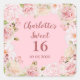 Sticker Carré Balise Fleurs roses Douces 16 Anniversaire Favor