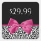 stickers boutique empreinte de léopard noir et blanc tendance avec un ruban rose chaud et vivace attaché dans un arc girly. Personnalisez ce design motif animal mignon en ajoutant le prix de vente au détail de votre choix. Image imprimée plate, pas le ruban réel.