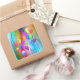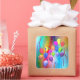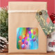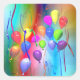 Un autocollant en forme de carré avec ma conception de ballons d'anniversaire lumineux et des serpentins sur un arrière - plan coloré.