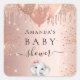 Pour un baby shower, célébrer une petite fille. Un arrière - plan rose en or. Décoré d'or rose, gouttes roses, look dérapant de peinture, ballons et une mignonne petite fille d'éléphant. Personnalisez et ajoutez le nom de la mère à être