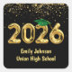 Ballons en feuille d'or pour la graduation 2025 sur un arrière - plan noir avec une casquette verte et des confettis d'or. La couleur Arrière - plan peut être modifiée. Le texte est modifiable.