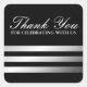 Élégant autocollant avec des bandes de dégradé gris doux sur un arrière - plan noir. Texte personnalisable "Merci pour célébrer avec nous". Design élégant et classe. Idéal pour les anniversaires et les mariages.