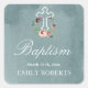 Sticker Carré baptême océan bleu marsala floral monogramme autoc