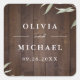 Fond de grain de bois de grange sombre avec feuilles de verdure botanique aquarelle moderne, avec les noms des mariés et la date de l'événement, simple et élégant, excellents autocollants de faveur de mariage personnalisés pour un mariage de jardin botanique rustique en automne et en hiver.