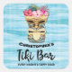 Drôle toutes les heures est un happy hour à votre propre maison Tiki Bar. Monogramme avec nom de barman pour créer un autocollant décoratif à thème de bar amusant. Tiki a l'air beau avec leur langue qui sort. Des fleurs tropicales pour vous rappeler le paradis des îles de plage.