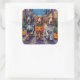 Sticker Carré Basset Hound Dogs Trick-or-Treating en Halloween