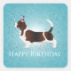 Sticker Carré Basset Hound Joyeux design d'anniversaire