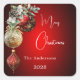 Pour une fête de Noël favorise ou emballage cadeau. Un arrière - plan rouge inégal. Décoré de baubles rouges et dorés, un peu de verdure et un cône de pin. Personnalisez et ajoutez votre nom, année. Texte : Joyeux Noël