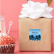 Palmiers Plage Noir & Bleu Fête Anniversaire Favoriser les autocollants. Invitations et autres articles correspondants disponibles.