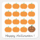 Un joli coin de citrouilles oranges festifs est rejoint par un joyeux petit bonhomme de vacances ou une lanterne à la fin de la ligne. Joyeux Halloween !
