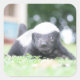 Sticker Carré Bébé blaireau au miel sur l'herbe verte photo