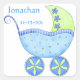 Sticker Carré Bébé bleu Buggy Nom du garçon Date de naissance Fa