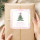 Élégants autocollants de baby shower avec un joli sapin de Noël et une typographie moderne sur une belle aquarelle arrière - plan rose vif.