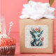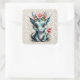 Sticker Carré Bébé Dragon aux fleurs roses et dentelle