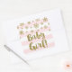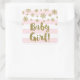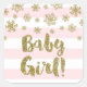 Sticker Carré Bébé Fille rose rayure or neige Baby shower d'hive