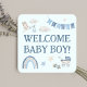 Sticker Carré Bébé Garçon Bleu À Bord Cute Stork Aquarelle