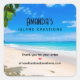 Autocollants d'affaires avec une belle photo. Une plage de sable blanc à l'eau bleue azur. Image relaxante avec un ciel ensoleillé et un surf doux en mousse avec quelques mignons feuilles tropicaux encadrant l'image.