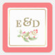 Sticker Carré Berry Branch | Mariage de monogramme de corail ros