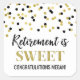 La retraite est une étiquette de faveur douce autocollante avec motif confetti noir et or.