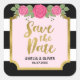 Sticker Carré Black White Stripes Mariage Rose Enregistrer la da