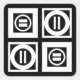 Le motif géométrique gras comporte quatre carrés blancs avec espace entre eux sur un arrière - plan noir. Les carrés épais diagonalement opposés contiennent chacun un cercle blanc mince avec un épais signe égal à l'intérieur. En revanche, les carrés fins contiennent chacun un cercle blanc épais qui touche les bords du carré avec un mince signe vertical égal à l’intérieur. numériquement créé une image. Copyright © 2015 Claire E. Skinner. Tous droits réservés.