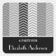 Ajoutez une touche contemporaine à votre style de fête avec ces autocollants motifs à rayures de chevrons noirs et blancs. Personnalisez ce design zigzag tendance dans les tons gris en ajoutant le nom de toute femme moderne.