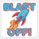 Notre design Blast Off est un design génial pour les enfants de tous âges qui aiment l'espace et les navires de roquettes, dispose d'un navire de roquette bleu et rouge avec des gaz d'échappement flamboyants et texte qui dit Blast Off! Blast Off rocket ship T-shirts, bibs, couvertures, cartes, autocollants, tasses, sacs, coussins, horloges murales, et bien plus encore!