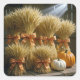Sticker Carré Blé Enroulé Dans Une Grange Avec Des Citrouilles
