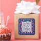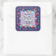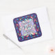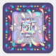 Fêtez votre anniversaire de fête mexicaine avec ce design coloré amusant sur de beaux autocollants carrés bleu foncé. CORRESPONDANCE d'objets dans notre collection.
