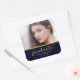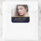 Cet autocollant chic carré de graduation présente le mot "Graduate" dans un script élégant en faux feuille d'or contre un arrière - plan bleu foncé avec une fausse ligne d'or. Utilisez-le pour sceller vos enveloppes, sacs de faveur ou pour la décoration. Consultez les éléments de graduation correspondants ici https://www.zazzle.com/collections/119637323833384053?rf=238364477188679314 Personnalisez-le en remplaçant le texte de l'espace réservé et remplacez l'exemple/l'espace réservé photo par votre propre photo. Pour plus d'options comme changer la police et sa taille/couleur ou l'espacement entre les lettres cliquez sur le bouton "Personnaliser". *Veuillez noter que le filigrane Zazzle qui apparaît dans l'aperçu du zoom n'apparaîtra PAS sur le produit imprimé final. © Bois de rose et agrumes