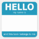 Sticker Carré Bleu "Hello" Nom Badge Plaque