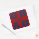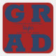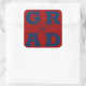 GRAD en lettres rouges foncées en gras remplit les coins de ces stickers carrés arrière - plans bleus. Félicitations au-dessus du nom de votre diplômé et de la classe de ci-dessous. VOIR LA COLLECTION complète de combinaisons de couleurs préfaites, invitations, plaques en papier, serviettes, enseignes et plus dans notre magasin.