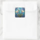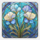 Sticker Carré Bleu Turquoise Floral Art Nouveau Vitrail