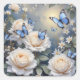 Sticker Carré Blue Butterflies On White Roses and Daisies