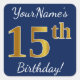Sticker Carré Blue, Faux Gold 15e anniversaire + Nom personnalis