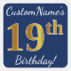 Sticker Carré Blue, Faux Gold 19e anniversaire + Nom personnalis