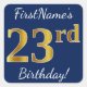 Sticker Carré Blue, Faux Gold 23e anniversaire + Nom personnalis