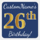 Sticker Carré Blue, Faux Gold 26e anniversaire + Nom personnalis