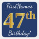 Sticker Carré Blue, Faux Gold 47th Birthday + Nom personnalisé