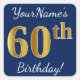 Sticker Carré Blue, Faux Gold 60e anniversaire + Nom personnalis