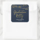 Cet élégant sticker carré Grad Party comporte des cordes de lumières et le mot "Graduation Party" en faux or contre un arrière - plan bleu foncé. Consultez d'autres invitations et objets de graduation ici https://www.zazzle.com/collections/class_of_2017_graduation-119637323833384053?rf=238364477188679314 Personnalisez-le avec vos détails en remplaçant le texte de l'espace réservé. Pour plus d'options, cliquez sur le bouton "Customiser". *Veuillez noter que le filigrane Zazzle qui apparaît dans l'aperçu du zoom n'apparaîtra PAS sur le produit imprimé final. © Bois de rose et agrumes