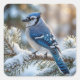 Sticker Carré Blue Jay Perched On a Snowy Pine