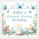 Sticker Carré Blue Pastel Butterfly Fairy First Birday -