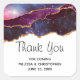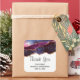 Mariage merci autocollants avec un design abstrait avec des couches bleues et violettes avec des rubans en faux feuille d'or entre les deux.